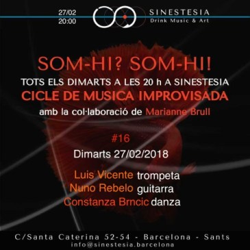 El martes 27 a las 20h actuamos en el ciclo Som-hi! organizado por Marianne Brull en el Bar Sinestesia de Barcelona.